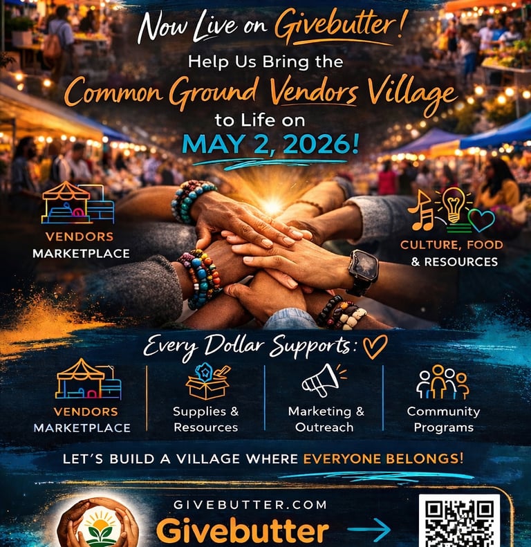 The Common Ground Vendor Village is a vibrant community marketplace designed to celebrate culture, creativity, and local entrepreneurship.